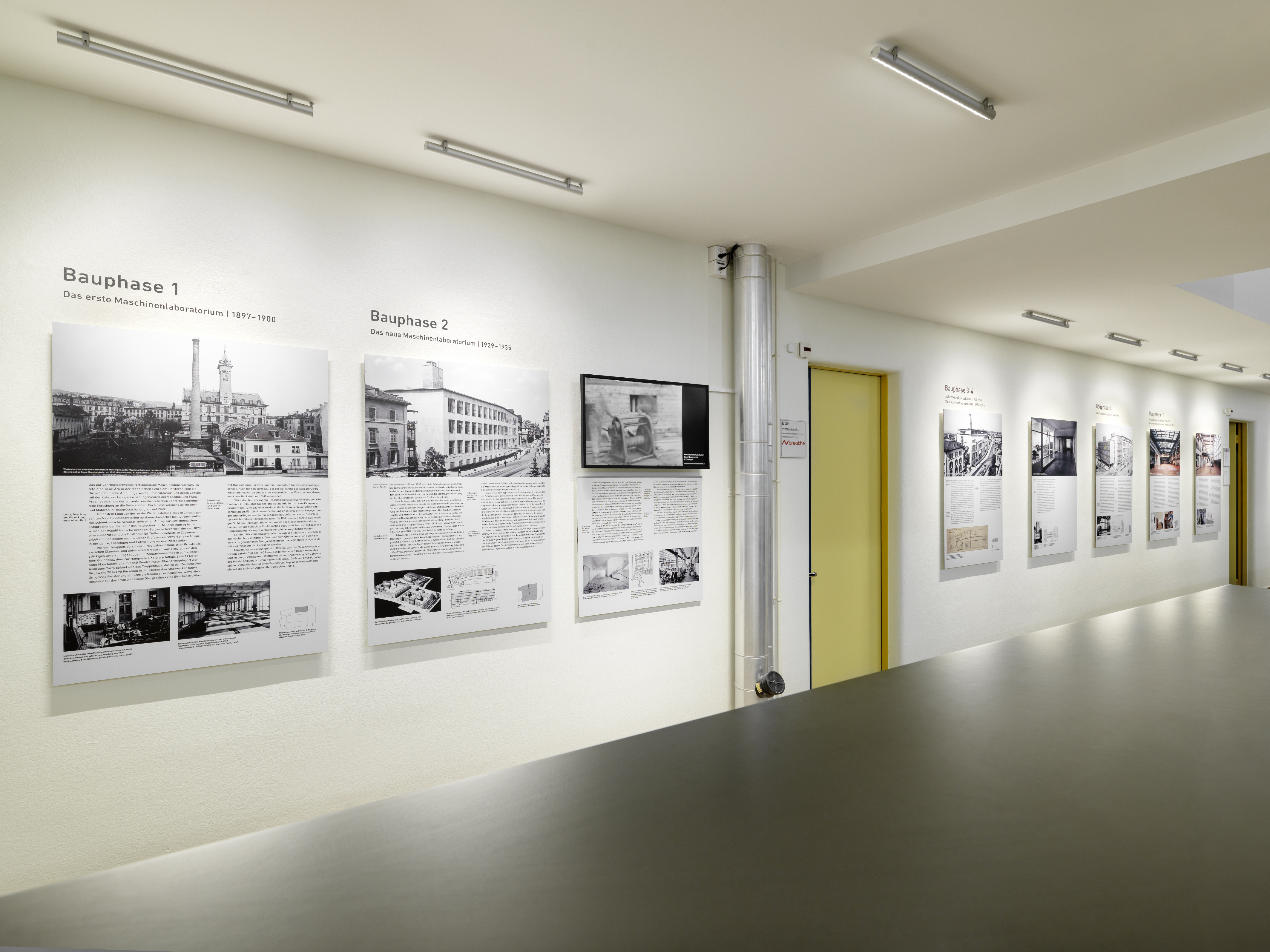 Die Dauerausstellung in der ML-Halle der ETH Zürich vermittelt die Entstehungs- und Nutzungsgeschichte des Gebäudes. Ein stimmiges Ausstellungskonzept macht die bauliche und funktionale Entwicklung für Besucher:innen nachvollziehbar.